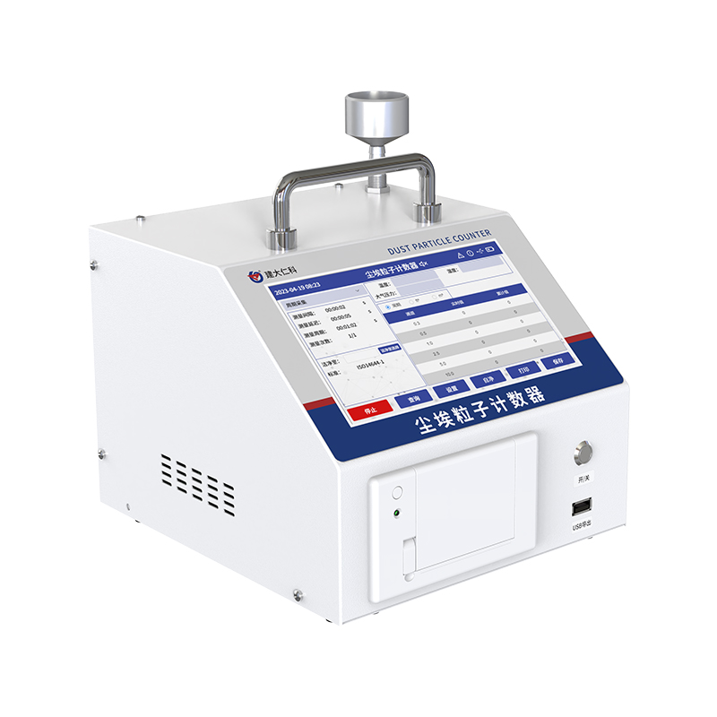 塵埃粒子計數器基于激光散射原理連續采集并計算單位體積內空氣中不同粒徑的懸浮顆粒物個數,即顆粒物濃度分布,進而換算成為質量濃度并輸出。能同時對設定的六個粒徑通道進行檢測,用戶可自行設定采樣時間、采樣間隔和采樣次數等參數。