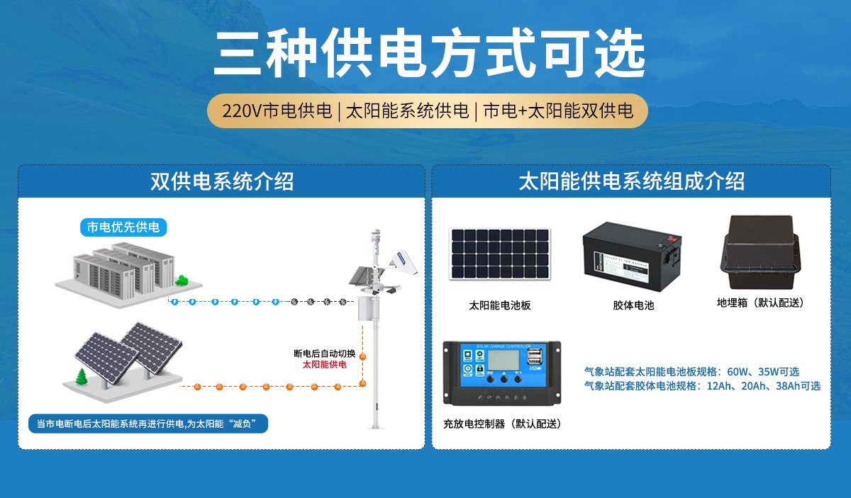| 雙供電 | 支持220V市電與太陽能板雙供電 (優(yōu)先市電供電,當(dāng)市電斷電后太陽能供電系統(tǒng)提供供電,設(shè)備正常工作不會間斷) | ||