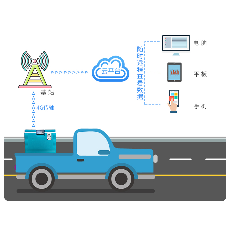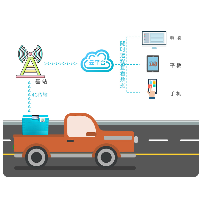 我公司基于CFDA發布的《醫療器械冷鏈(運輸、貯存)管理指南》研發的溫度記錄儀,只需一張SIM卡,就可通過網絡基站將采集到的溫濕度數據上傳到云服務器(云平臺),云平臺完全中性、免費、24小時不間斷運行,4G通訊月流量小于30M。