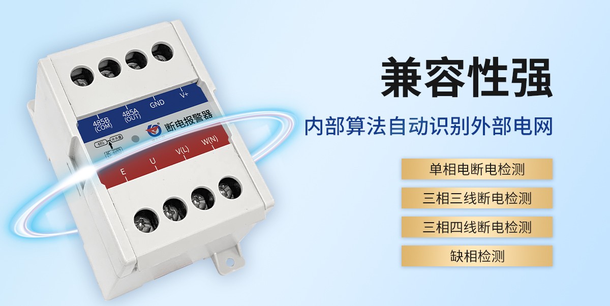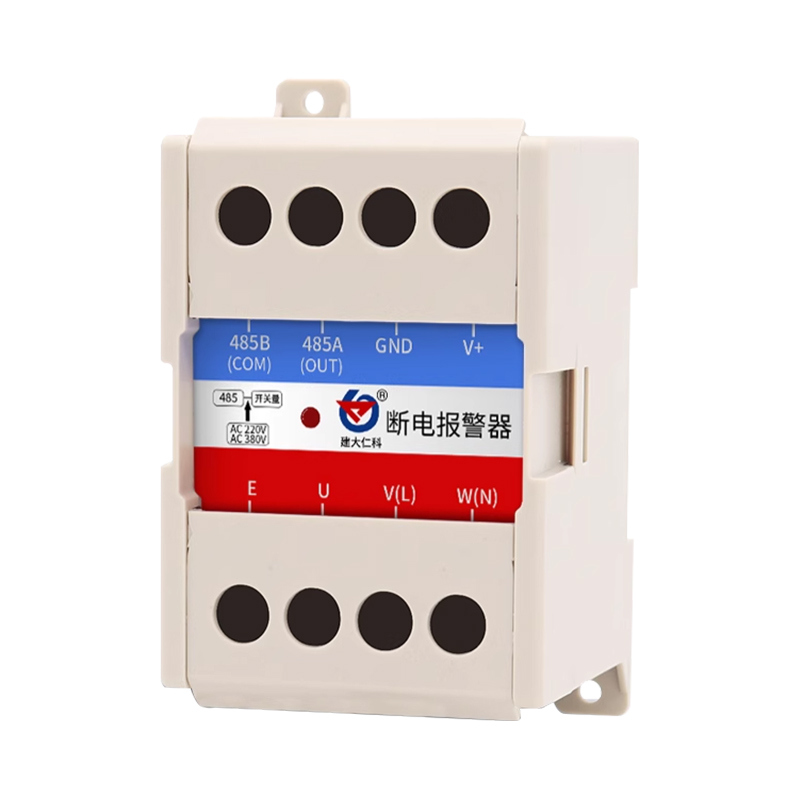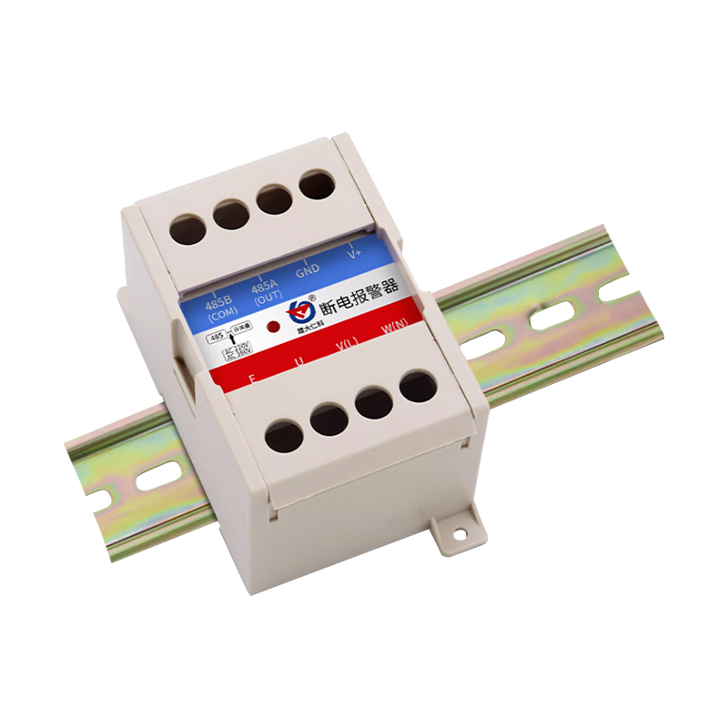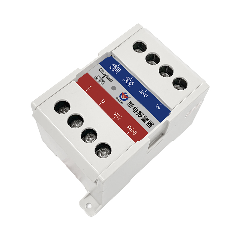 該報警器能夠進行單相電斷電檢測,三相三線、三相四線斷電及缺相檢測。報警信號可選485輸出,亦可選開關量干接點輸出。可直接接入現場的PLC、工控表、組態屏或組態軟件。設備采用卡軌式外殼,即可壁掛安裝也可現場安裝于標準DIN35mm導軌。