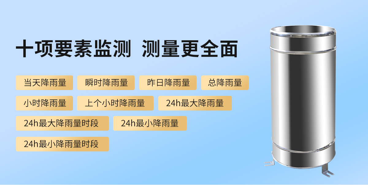 翻斗式雨量計完全符合GB/T21978.2一2014《降水量觀測要求》國標要求,可附帶水利部水文儀器及巖土工程儀器質量監督檢驗測試中心的檢測報告。可采集瞬時雨量、當天雨量、昨日雨量、累計雨量等十項雨量數據,支持多種信號輸出方式,全系列產品均支持個性化定制。