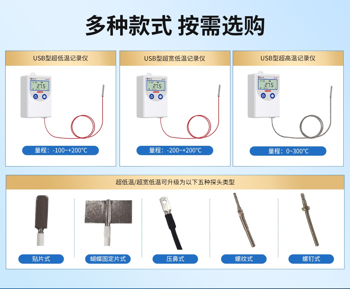 | -5WL | 超寬低溫探頭:測溫范圍-200~+200℃,探頭線長度默認3米 | |