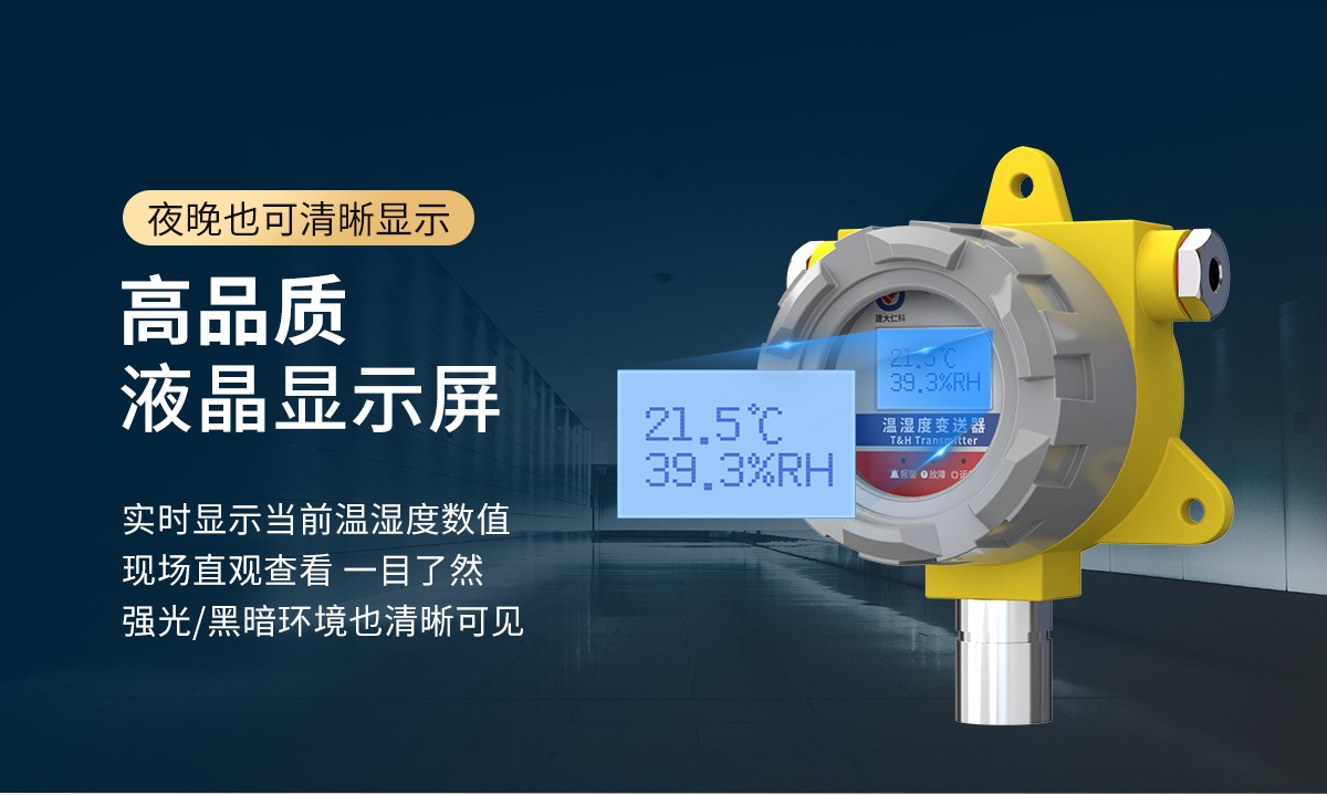 我司設(shè)計(jì)的溫濕度變送器,用于空氣中溫濕度的檢測(cè),當(dāng)濃度超過(guò)預(yù)置報(bào)警值時(shí)會(huì)發(fā)出聲光報(bào)警信號(hào),以提醒用戶及時(shí)采取安全措施。帶有大屏液晶顯示,防護(hù)等級(jí) IP65,防爆標(biāo)志:Ex d IIC T6 Gb,可應(yīng)用于戶外惡劣的現(xiàn)場(chǎng)環(huán)境。采
