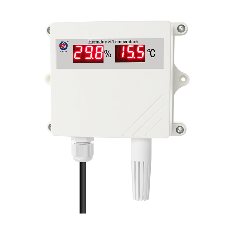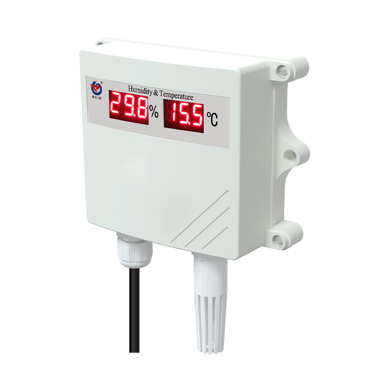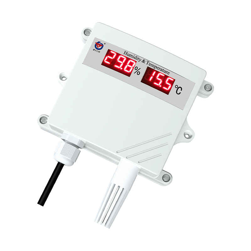 本產品采用高亮數碼管實時顯示當前溫度濕度,壁掛高防護外殼,防護等級 IP65,防雨雪且透氣性好,支持多種外延探頭類型,采用顆粒燒結探頭護套,探頭與殼體直接相連外觀美觀大方。RS485信號輸出,最遠可通信 2000 米,標準ModBus-RTU 協議,支持二次開發。