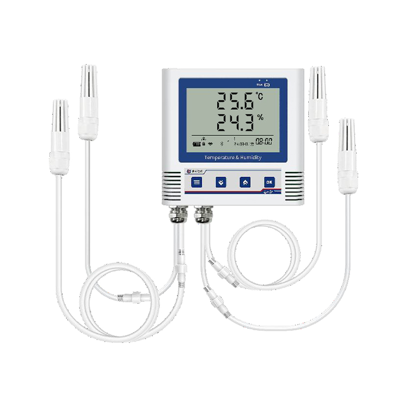 WIFI低功耗多探頭型溫濕度變送器采用 WIFI 無(wú)線數(shù)據(jù)傳輸?shù)亩嗵筋^溫濕度變送器。可采最多4 路集溫濕度數(shù)據(jù)并通過 WIFI 網(wǎng)絡(luò)上傳至我司提供的綜合環(huán)境云平臺(tái),支持 2.4GHz 和5GHz 雙頻 WIFI。本系列產(chǎn)品充分利用已架設(shè)好的 WIFI 通訊網(wǎng)絡(luò)實(shí)現(xiàn)數(shù)據(jù)采集和傳輸,達(dá)到溫濕度數(shù)據(jù)集中監(jiān)控的目的。
