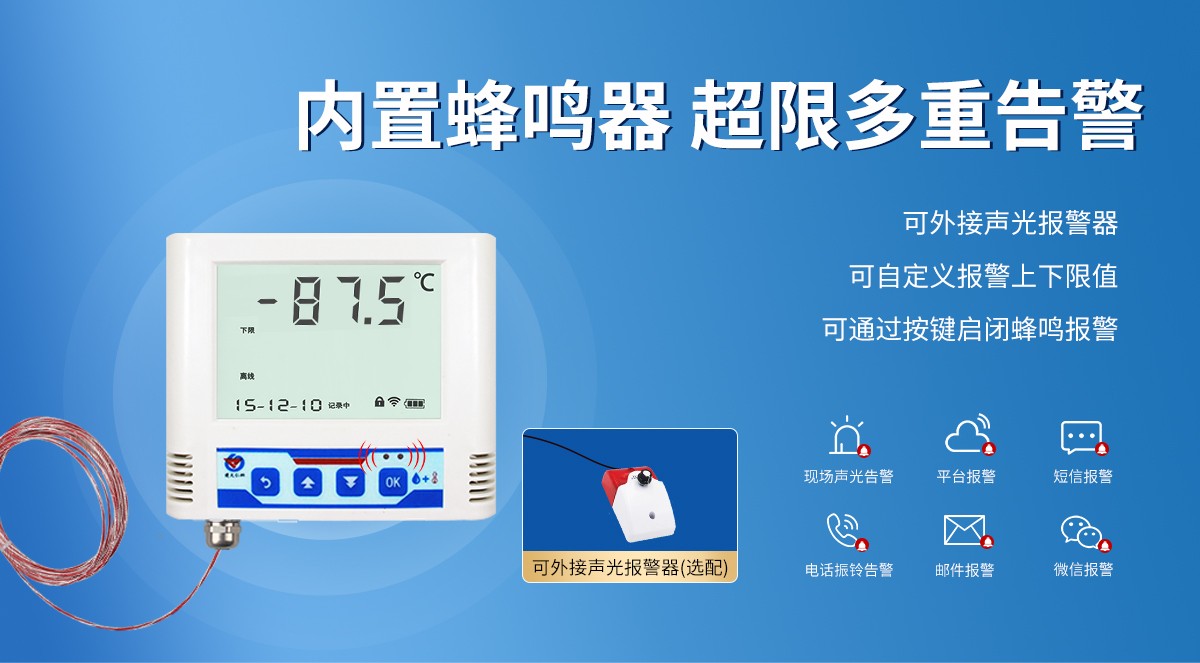 產品采用大屏液晶顯示,具有溫度上下限雙控,限值自由設置,溫度憑密碼校準,網口數據傳輸等功能,內部集成報警功能模塊(蜂鳴器或繼電器),可實現高、低溫報警。產品采用瑞士進口原裝高品質溫度測量單元,具有測量精度高,抗干擾能力強等特點,保證了產品的優異測量性能。