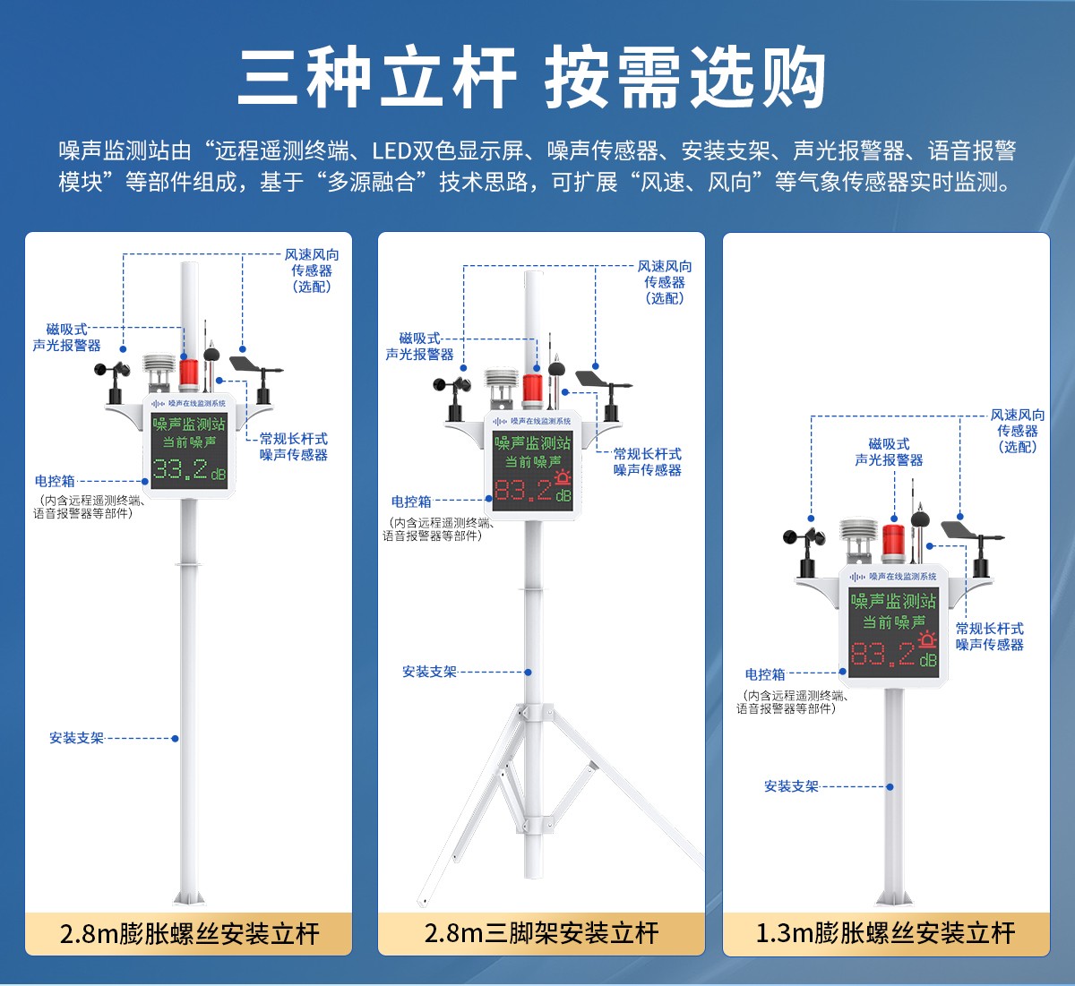 噪聲監(jiān)測站采用常規(guī)長桿式噪聲變送器,實現(xiàn)噪聲污染實時監(jiān)測和數(shù)據(jù)傳輸。支持雙色屏,點整數(shù)量64*64,實時顯示當前噪聲值。通過對噪聲數(shù)據(jù)的分析,為噪聲治理提供科學(xué)依據(jù)。